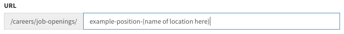 Recommendation: If the job posting is for a specific location, in the “URL” after the position add “-” and then the name of the location. See the example below.