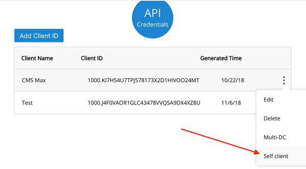 From the API Credentials screen, click the menu icon for the client app you just created and select "Self client".