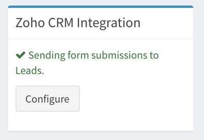 Clicking configure will let you select which module the data should be sent to and let you map Zoho fields to a form field or a specific value.