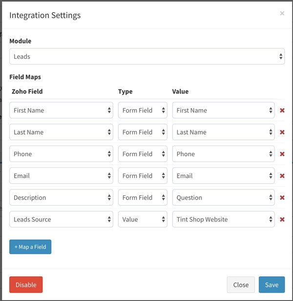 Below is an example of how our forms on CMS Max integrate with Zoho.